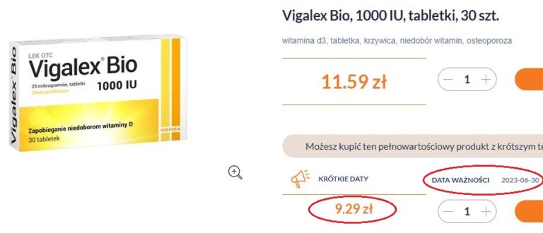 Spójrzcie na przykłady poniżej. Screeny zostały zrobione na stronie jednej z aptek na początku 01.2023. Oba produkty mają datę ważności 30.06.2023 i generalnie każdy z tych produktów do tej daty zachowa swoje właściwości.