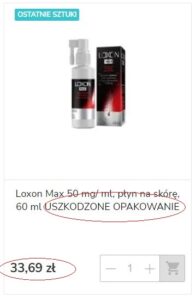 Spójrzcie na przykład Loxonu Max. Jedna z aptek przeceniła go o prawie 2 złote z racji uszkodzonego opakowania.