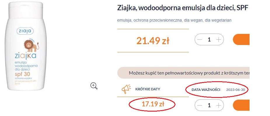 Witamina D3 z krótka datą jest tańsza o ponad 2 złote. Emulsja do opalania z filtrem z krótką datą o ponad 4 zł.
