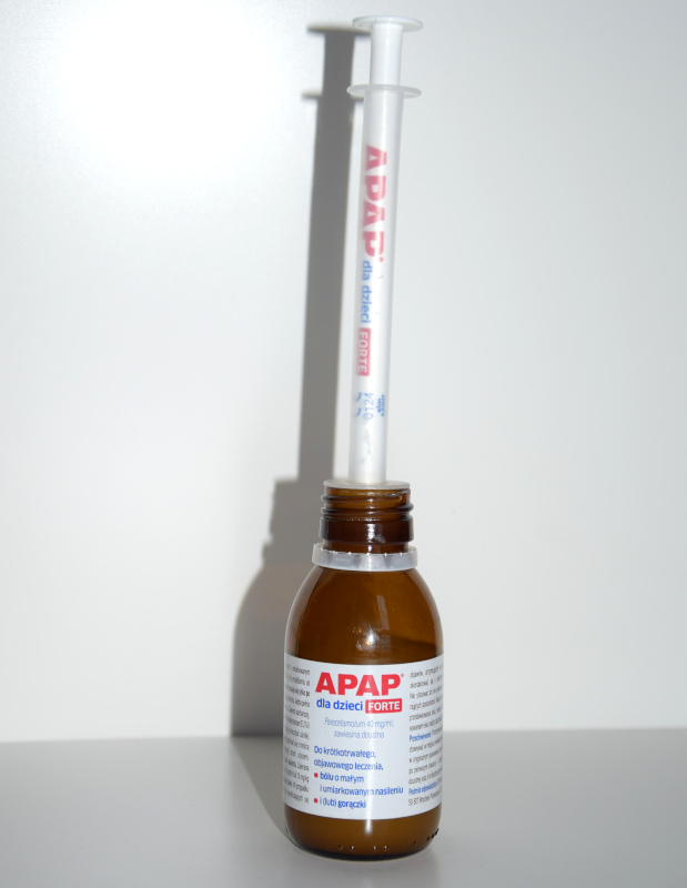 • Apap dla dzieci Forte to zawiesina, dlatego przed nabraniem leku do strzykawki należy dobrze wstrząsnąć butelką.