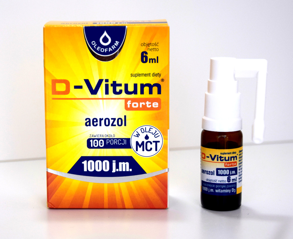 Suplement diety D-Vitum Forte 1000 j.m. aerozol to olejowy roztwór witaminy D3 podawanej w formie aerozolu, która: