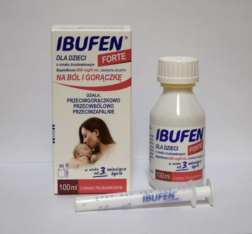 Lek Ibufen dla dzieci FORTE o smaku truskawkowym wskazany jest do stosowania u dzieci, młodzieży i osób dorosłych w przypadku gorączki różnego pochodzenia (także w przebiegu zakażeń wirusowych) oraz bólu różnego pochodzenia o nasileniu słabym do umiarkowanego (także bóle uszu występujące w stanach zapalnych ucha środkowego).