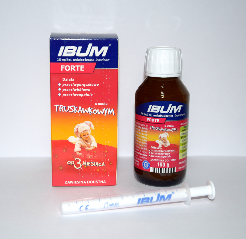 Lek Ibum FORTE o smaku truskawkowym wskazany jest do stosowania u dzieci, młodzieży i osób dorosłych w przypadku gorączki różnego pochodzenia (między innymi w przebiegu grypy, przeziębienia, a także w przebiegu odczynu poszczepiennego) oraz bólów różnego pochodzenia o nasileniu słabym do umiarkowanego, takich jak: